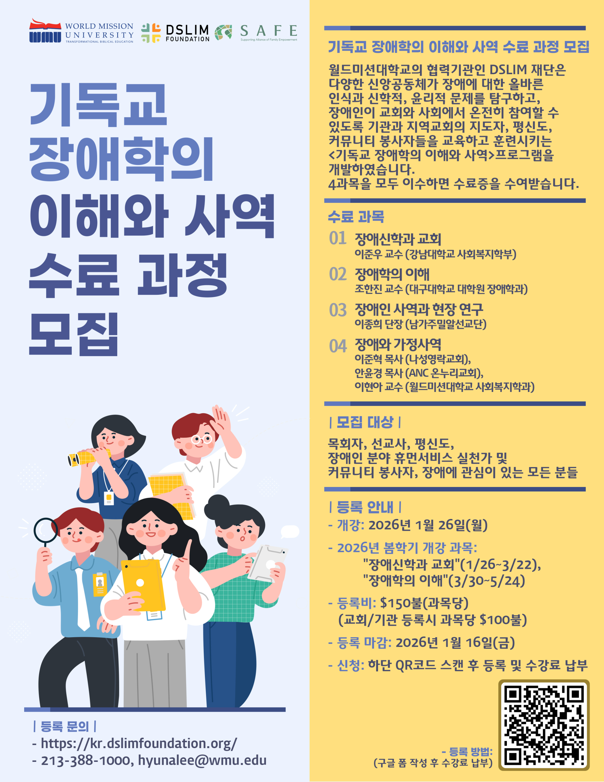 2026 기독교 장애학의 이해와 사역 수료 과정 (봄학기)